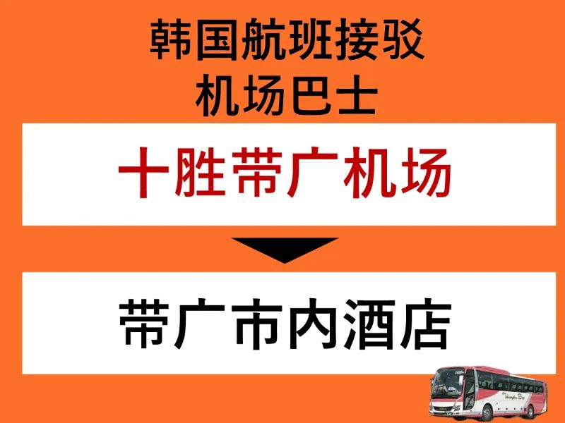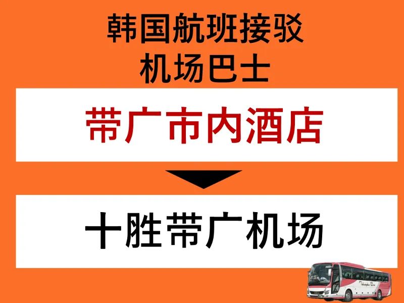 韩国航班机场接驳巴士【上车】十胜带广机场(1号乘车口) ⇒【下车】 带广市内各酒店
