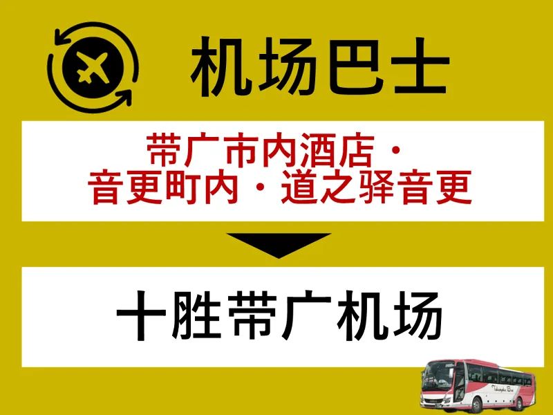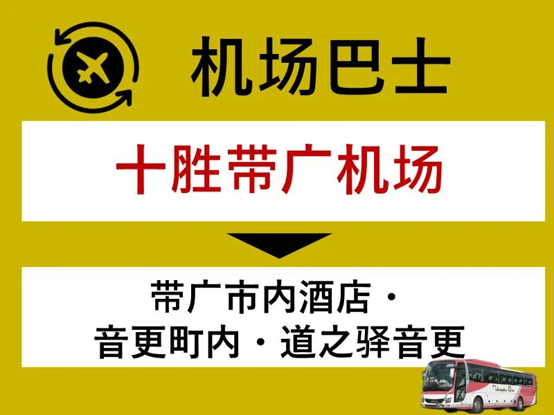 机场线【上车】道之驿音更 ・ 音更町内 ・ 带广市内各酒店 ⇒【下车】十胜带广机场