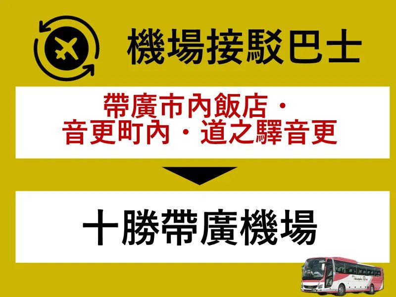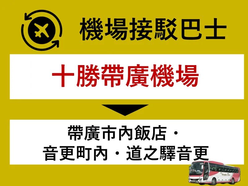 機場線【乘車】道之驛音更 ・ 音更町內 ・ 帶廣市內各飯店 ⇒【下車】十勝帶廣機場